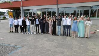 Den feierlichen Höhepunkt stellte dann wie jedes Jahr die Zeugnisübergabe dar. Unter den Augen ihrer Familien und LehrerInnen konnten die AbsolventInnen stolz ihre Zeugnisse entgegennehmen, im Anschluss erfolgte die besondere Ehrung der Jahrgangsbesten. Feierlich wurden die nun Ehemaligen von den Lehrkräften rausgeklatscht, ein symbolischer Gang in ein neues Leben: Sei es eine Ausbildung zum Forstwirt, Kinderpfleger, Zerspanungsmechaniker, Industriekauffrau, Fachinformatiker, medizinische Fachangestellte oder Kfz-Mechatroniker, die Lebenswege sind vielfältig. Zwei Schülerinnen werden in Zukunft das Gymnasium besuchen, einige werden auf die FOS gehen.