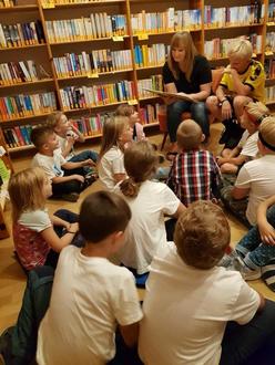 In der Bücherei wurden die künftigen Erstklässler von Manuela König erwartet, die ihnen auch noch das Kinderbuch "Dr. Brumm versteht das nicht." von Daniel Napp vorlas.