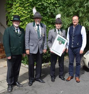 Im Bild v. links: Gauschützenmeister Norbert Mahr, Schützenmeister Franz Josef Sittler, Ehrenschützenmeister Dieter Nicola, 1. Bürgermeister Ludwig Nätscher Foto: Stefan Kohlinger