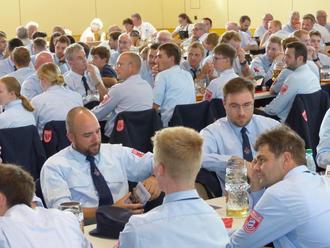 Zunächst erfuhren die Floriansjünger in verschiedenen Ansprachen Interessantes, bevor die Ehrenmitglieder Reinhard Schmitt und Adolf Karg das Signal gaben und in der großzügig renovierten Werntalhalle pünklichst das Mittagessen gereicht wurde.