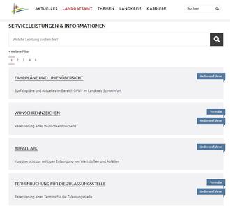 Der neue Web-Auftritt des Landratsamts Schweinfurt. Eine Auswahl der digitalen Serviceleistungen. Foto: Screenshot