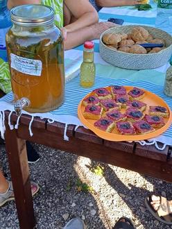 Neben Kräuterlimonade gab es selbstgebackene Brötchen mit Kräuterbutter und sogar einen leckeren Kuchen.
