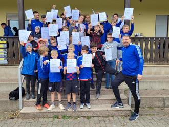Alle 28 Kinder lösten die 5 Prüfungen mit Bravour und am Ende konnte Organisator Timo Wailersbacher mit den sieben Übungsleitern 7 x die DFB-Urkunde in GOLD, 8 x in SILBER und 13 x in BRONZE an die Kinder überreichen. E-Jugendtrainer Christoph Wailersbacher war voll des Lobes nach den erbrachten Leistungen aller Kids und schloss die Veranstaltung mit den Worten: „Wir Trainer sind mächtig stolz auf Euch alle und wir haben heute deutlich gesehen, dass ihr mit Ehrgeiz, Fleiß und dem nötigen Trainingswillen auch anspruchsvolle Prüfungen meistern könnt.“