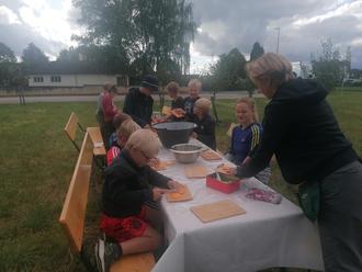 Kurzentschlossen haben wir dann noch ein paar Kürbisse zugekauft, damit wir unsere geplante Kürbissuppe zubereiten konnten. Das war die richtige Entscheidung, denn die Kinder hatten so viel Freude beim Schneiden der Kürbisse und beim Feuermachen, denn die Suppe wurde im Feuertopf gekocht und mit den Kräutern aus den Hochbeeten verfeinert, so dass diese jeden besonders schmeckte. Wer noch mitmachen möchte und zwischen 6 und 12 Jahre alt ist, kann sich bei Angela Grüner (Tel. 442434), Michaela Kolbe (Tel. 4433934) oder Heidi Schneider (Tel. 5961) gerne melden.