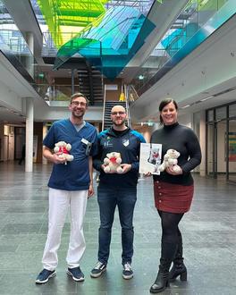 Die Spende der Hopfen Spiggerer wurde am 18.11.2025 dem Klinikum Forchheim übergeben. Dort werden die Trösterteddys direkt vor Ort verteilt.