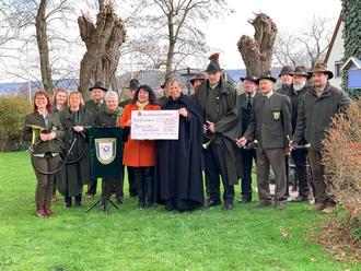 Seit etlichen Jahren ist es in der kleinen Pautzfelder Marienkirche Usus, am letzten Sonntag im November die Hubertusmesse zu feiern. Mit Tannenzweigen, jedes Jahr aufs Neue gespendet von der Baumschule Schmidtlein aus Effeltrich, und dem mächtigen Hirschgeweih, des „Hubertushirsches“ der ein Kreuz zwischen seinen Geweihstangen trägt, bot die altehrwürdige Kirche den Besuchern ein imposantes Bild. Hubertus Henglein, Jagdpächter aus Pautzfeld und Hornmeister der Jagdhornbläser Weingartsteig, lobte die hervorragenden Zusammenarbeit zwischen der Jägerschaft und der Kirche und dankte in besonderer Weise Pfarrer Matthias Steffel für sein immer offenes Ohr und seine Wertschätzung gegenüber den Jägern und ihrer Arbeit als Heger und Pfleger von Tier, Wald und Flur. In diesem Sinne war darum auch der Tenor der Predigt: „Den Schöpfer im Geschöpfe ehren!“ - Der Geistliche erinnerte daran, dass Nachhaltigkeit und Rücksicht auf die Natur und Umwelt auch im Kleinen bei jedem einzelnen selbst beginnt.Der Legende nach verbirgt sich hinter dem heiligen Hubertus ein Bischof von Lüttich aus dem 8. Jahrhundert. Dieser frönte nach dem Tod seiner geliebten Frau unachtsam und regellos der Jagd. Und so kam es, dass sich Hubertus selbst am Karfreitag auf die Jagd begab. Dort begegnete er einem Hirsch mit einem leuchtenden Kruzifix zwischen seinem Geweih. Diese Begegnung änderte alles und Hubertus wandelte sich vom Wüterich zum Bewahrer der Natur, der die Wildtiere auch als Geschöpfe Gottes achtete.Die Jagdhornbläser Weingartsteig füllten mit ihren harmonischen Hörnerklängen die Pautzfelder Kirche und durch die zahlreich anwesenden Gläubigen ertönte auch heuer wieder die 2018 erstmals uraufgeführte „Pautzfelder Hubertusmesse“. Den Solopart der verschiedenen Liedstücke übernahm die Sopranistin Heike Nagengast- Beck aus Pautzfeld. Am Ende des Gottesdienstes konnte die Bläsergruppe Weingartsteig an Pfarrer Matthias Steffel und Kirchenpflegerin Lucia Schneider einen Scheck in Höhe von 500 Euro übergeben. Dieser soll für die anstehende Sanierung der Kirche in Pautzfeld, zweckgebunden, verwendet werden. Im Anschluss an den Gottesdienst konnten sich Besucher und Akteure bei einem Schluck heißen „Jagatee“ im Vorhof der Kirche stärken.