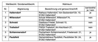 | 2. | Die Gemeinde Hallerndorf ist in folgende 6 Wahlbezirke eingeteilt |