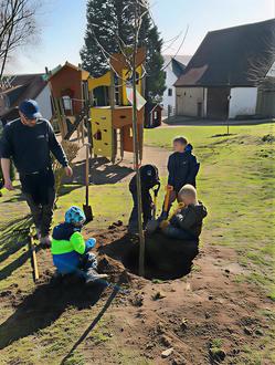 Die Kita St. Sebastian hat bei der Aktion „Streuobst für alle" mitgemacht und darf sich über einen Apfelbaum, Birnenbaum und Walnussbaum freuen.