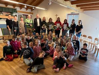 Neben schönen Blumensträußen und kleinen Geschenkkörben haben vor allem die Kinder mit schönen Liedern und einem Kreistanz die Feier zu etwas Besonderem gemacht.
