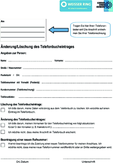 Der Telefonbucheintrag kann gelöscht oder geändert werden. Z.B. kann der Vorname mit nur einem Buchstaben abgekürzt werden. Den Vordruck erhalten Sie beim Quartiersmanagement.