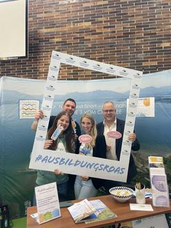 Die Chiemgau GmbH Wirtschaftsförderung lädt unter der Schirmherrschaft von Landrat Siegfried Walch zusammen mit dem Wirtschaftsverband Landkreis Traunstein e. V. jährlich zur AUSBILDUNGSROAS. In diesem Jahr war auch ein Stand der Gemeinde Seeon-Seebruck dabei. Hier präsentierten wir unsere drei möglichen Ausbildungsberufe: Erzieherpraktikanten (m/w/d) für das Sozialpädagogische Einführungsjahr (SEJ), Verwaltungsfachangestellte (m/w/d) Fachrichtung Kommunalverwaltung und Kaufleute (m/w/d) für Tourismus und Freizeit.