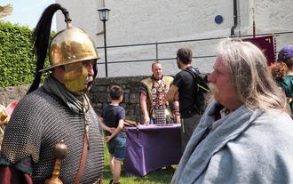 Zusammen mit Museumsleiter Ziereis, Andreas Reiter aus Rott, Klaus-Peter Ott aus Traunstein und Hans Veit aus Rosenheim stellte er in einem kleinen Römerlager das Leben in der Armee vor und die Gruppe zeigte stolz ihre hochwertige Ausrüstung. Hans Veit, mit über 80 Jahren mittlerweile Bayerns wohl dienstältester römischer Legionär, ließ es sich nicht nehmen, den ganzen Tag in voller Rüstung samt Kettenhemd, Helm und Bewaffnung durchzustehen. Veit ist ein Legionär durch und durch und geht seinem Römerhobby schon über 40 Jahre nach. Er stand bereits bei der Eröffnung des Römermuseums im Jahr 1988 am Eingang in Legionärsausrüstung Spalier und ist dem Haus seither verbunden. Dieses Jahr war am Eingang häufig der Keltendarsteller Alexander Krop zu sehen. „Ein Kelte wie aus dem Bilderbuch!“ war von den Besuchern zu hören, die vorher an seinem Würfelturm ihr Glück versucht hatten und als Gewinn den einen oder anderen Halbedelstein ergatterten. „Es war ein wunderschöner Familiensonntag im und am Römermuseum Seebruck“, freute sich Museumsleiter Matthias Ziereis, sichtlich froh über den großen Zuspruch durch die Besucher. „Wir historischen Darsteller konnten vielen Kindern und Erwachsenen zeigen, wie Geschichte lebendig werden kann und die Römer ein spannendes Thema sind.“