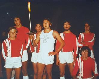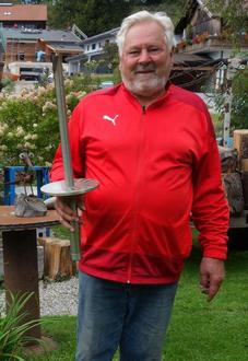 Vor genau 50 Jahren fanden in München die zwanzigsten Olympischen Sommerspiele der Neuzeit statt. In der Zeitung war eine großartige Serie hierüber. Auch fand der olympische Fackellauf seine Würdigung. Das olympische Feuer wurde auch damals 1972 in Athen am Olymp entfacht, und dann per Stafette mit Läufern nach München gebracht. Auch dem Sportverein Seeon wurde die Ehre zuteil, dass er zwei Fackelläufer benennen durfte, welche je etwa einen Kilometer das olympische Feuer tragen durften. Die beiden Läufer waren Georg Reiter aus Truchtlaching und Peter Mussner aus Seeon. Beide wurden von je sechs Vereinsmitgliedern begleitet. Die Begleiter von Georg Reiter sind mir leider nicht bekannt, außer Hans Eiblmeier aus Wattenham. Peter Mussner hat von seinem Fackellauf noch ein Foto. Auf dem Foto sind auch seine Begleiter zu sehen. Von links nach rechts: Michael Berger, Georg Mussner, Peter Keller, Peter Mussner selbst, Sepp Binder, Fritz Hofmann aus Pittenhart, und kniend Albert Haunerdinger. Jeder Läufer hatte seine eigene Fackel, die er als Erinnerung mit nach Hause nehmen durfte. Der damals 23-jährige Peter Mussner trug die Fackel von Schneizelreuth hoch Richtung Weinkaser, das ist der Straßenknoten zwischen Schneizlreuth und Weissbach. Auf halber Strecke übergab er das Feuer an den Reiter „Schurl“ aus Truchtlaching. Die beiden hatten also einen ordentlichen Anstieg zu erklimmen. Für den SV Seeon, aber speziell für die beiden Fackelläufer selbst war diese Nominierung eine große Ehre. Peter Mussner war in seinen jungen Jahren schon für den Sportverein sehr aktiv. Er spielte selbst in der ersten Fußballmannschaft, trainierte obendrein auch noch die erste Schülermannschaft, und war damals schon bayerischer und deutscher Meister im Eisstockweitschießen. Seine größten Erfolge kamen freilich dann erst hinterher, als er 1986 Mannschaftsweltmeister und in der Einzelwertung Vizeweltmeister wurde. Die Fackel hält Peter Mussner heute noch in Ehren. Stolz präsentierte er sie beim Fototermin in seinem Garten, umringt von seinen Kunstwerken, die er aus Flusssteinen und Schrott entstehen lässt.