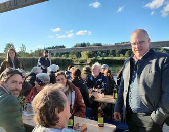 „Jetzt wohne ich schon 45 Jahre hier, aber mit dem Floß bin ich noch nie die Alz runtergefahren“. Diesen und ähnliche Kommentare hörten 1. Bürgermeister Martin Bartlweber und die Mitarbeiterinnen der Tourist-Information, die sich die Gelegenheit nicht nehmen ließen um auf dem Floß ausführlich mit den Vermietern zu ratschen und sich auszutauschen.