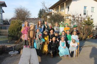 Der unsinnige Donnerstag stand ganz unter dem Motto „Märchen“. An unserem märchenhaften Buffet durften sich alle Prinzessinnen, Froschkönige, Zwerge, Wölfe und alle weiteren märchenhaft verkleideten Kinder stärken. An dieser Stelle möchten wir uns bei den Eltern bedanken, die uns hier kulinarisch verwöhnt haben. Passend zum Thema wurden Spiele gespielt und es gab ein Puppentheater von Hund und Krokodil, bei dem die Märchen ordentlich durcheinandergepurzelt sind. Auch eine Fotobox mit König und Königin durfte nicht fehlen. Bei unserer „kunterbunten Faschingsparty“ am Freitag waren die Spiele, Tänze und Lieder genauso kunterbunt wie die Kostüme, in denen sich die Kinder präsentierten. Bei Ententanz und Polonaise wurde im Kindergarten lautstark gefeiert und gesungen. Zur Stärkung gab es Krapfen der Bäckerei Kotter, die uns hier mit einem großzügigen Rabatt unterstützten. Herzlichen Dank hierfür!