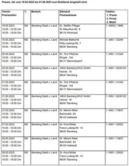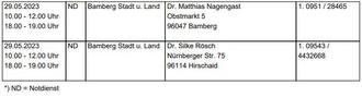 Bereitschaftspraxis Scheßlitz (Oberend 29, 96110 Scheßlitz), Tel. 09542/7743855