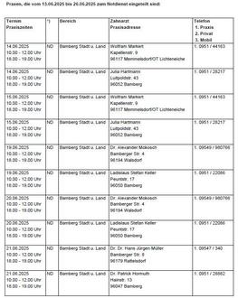 Bereitschaftspraxis Scheßlitz (Oberend 29, 96110 Scheßlitz), Tel. 09542/7743855