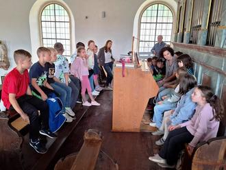 Mit jeder Jahrgangsstufe 1 bis 4 gestaltete Katharina Königsfeld nacheinander eine sehr kindgemäße Orgelkunde an der Orgel der Pfarrkirche Königsfeld. Sogar ein sonst verschlossener Blick ins Innere des Pfeifenwerks, des Windwerks und des Regierwerks der "Königin der Instrumente" gehörte dazu - dank ihres Vaters Ernst Grasser. Dieser Einblick war sehr beeindruckend für die Kinder und die Lehrkräfte.