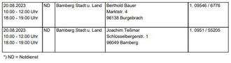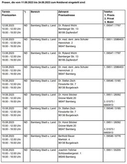 Bereitschaftspraxis Scheßlitz (Oberend 29, 96110 Scheßlitz), Tel. 09542/7743855