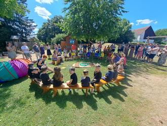 Bei herrlichsten Temperaturen fand unser Familienfest unter dem Motto „Beim Sommerfest auf der Wiese“ statt. Man sah viele Raupen, Schmetterlinge, Ameisen und bunte Blumen, die die Familien unserer Kinder mit Spielen, Gedichten und Liedern unterhielten.
