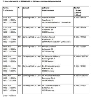 Bereitschaftspraxis Scheßlitz (Oberend 29, 96110 Scheßlitz), Tel. 09542/7743855