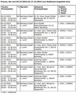 Bereitschaftspraxis Scheßlitz (Oberend 29, 96110 Scheßlitz), Tel. 09542/7743855