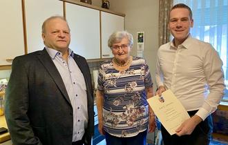 Zum 85. Geburtstag von Erika Barth gratulierten 2. Bürgermeister Frank Grasser und Ortssprecher Wolfgang Schrauder. Zu den Gratulanten gesellten sich der Kath. Frauenbund Steinfeld und viele Freunde und Verwandte. Wir wünschen Erika Barth weiterhin Gesundheit und einen heiteren Ruhestand.