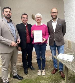 Verleihung der Anerkennungsurkunde "Schmuckziegel" an Marion Metzner