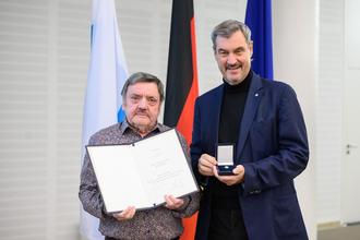 Die Verleihungsurkunde und der Orden wurden persönlich von Herrn Ministerpräsidenten Dr. Markus Söder im Atrium des Bayer. Staatsministeriums der Finanzen und für Heimat überreicht für: