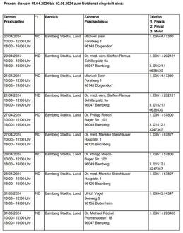 Bereitschaftspraxis Scheßlitz (Oberend 29, 96110 Scheßlitz), Tel. 09542/7743855