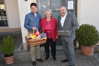 Thomas Sauer beglückwünschte die Jubilarin im Namen der Ortschaft Poxdorf. Vom VdK Ortsverband Königsfeld war Brigitte Schmittlein anwesend und wünschte alles Gute.