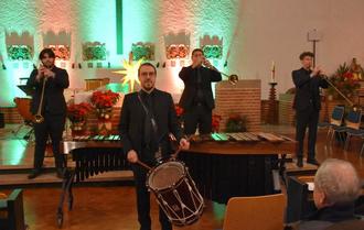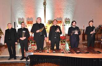 Zu Beginn war „Pastime with good company“ von Heinrich VIII. zu hören, gefolgt von Stücken aus der Feuerwerksmusik von Georg Friedrich Händel und Variationen über „Votre bonte grand dieu“ von Claude Balbastre sowie „Dank sei dir, Herr“ von Georg Friedrich Händel und „Sarabande“ aus der Suite Nr. 3 in C-Dur von Johann Sebastian Bach. Freuen konnte man sich darüber hinaus über „En Aranjuez con tu Amor“ von Joaquin Rodrigo, „Highland Cathedral“ von Michael Korb/Uli Roever, „Valencia“ von Ney Rosauro. „Benedictus Palladio“ von Karl William Jenkins und das Orgelsolo „Carillon de Westminster“ von Louis Vierne. Den Abschluss des Konzerts bildeten, passend zur Weihnachtszeit, „Freue dich Welt“, „Der Heiland ist geboren“ und „Tochter Zion, freu dich“. Die Anwesenden dankten mit langanhaltendem Applaus und das Ensemble verabschiedete sich mit drei Zugaben.