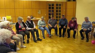 Bewegung – Bewegung – Bewegung, auch das wird bei den aktiven Senioren großgeschrieben. Machen wir doch mal eine Bewegungskette: jeder lässt sich eine Bewegung mit Händen oder Beinen, diese wird dann von allen 5 x wiederholt und so werden nacheinander alle Bewegungsvorschläge aneinandergehängt und zum Schluss kommen wir ganz schön in Fahrt und sind hoch motiviert uns alles zu merken und auch richtig nachzumachen. Und bei 25 Teilnehmern kommt da schon ganz schön was zusammen. Hände drehen, Füße hoch, Arme zu den Schultern und vieles mehr. Es war eine fröhliche und auch bewegte Runde. Natürlich kommt auch die Geselligkeit nicht zu kurz und es wird wieder viel gelacht und erzählt. Und dann sind es wieder 6 Tage bis wir uns am Freitag wieder sehen.
