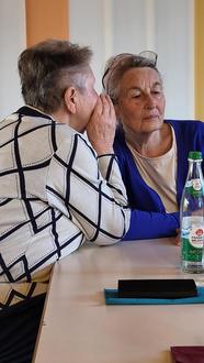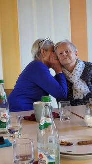 Warum wird denn heute bei den Senioren geflüstert. Die eine sagt dem anderen was ins Ohr und dann geht es weiter und jeder flüstert nur. Und es wird viel gelacht. So viel dass unser Bernhard und unsere Helga vor lauter Lachen nicht mehr flüstern können.