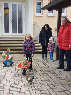 Ludwig Werner hat mit seinem Helferteam alte Osterspiele wieder aufleben lassen. Gekonnt wurde der Hindernissparcour bewältigt, vorsichtig wurde der Eierlauf absolviert und zielsicher Eier in einen Osterkorb geworfen oder „gegolft“.