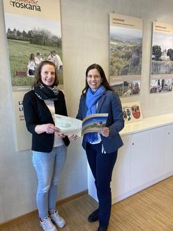 Frau Krötsch-Tischler (links im Bild) ist Diplom-Geographin mit Schwerpunkt Freizeit und Fremdenverkehr und war lange Jahre als Produktmanagerin bei einem großen internationalen Reiseveranstalter in Frankfurt tätig. Sie bringt daher umfangreiche Berufserfahrung im Bereich Produktmanagement, Marketing und Vertrieb mit und unterstützt Tourismusmanagerin Bianca Müller (rechts im Bild) mit 20 Stunden / Woche. Zudem wird sie für weitere 5 Stunden / Woche die Verwaltung in Litzendorf bei verschiedenen Projekten unterstützen und den jährlichen Weihnachtsmarkt organisieren.