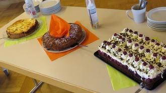 Unser Hans feierte am vergangenen Freitag seinen Geburtstag. Und da wurde natürlich wieder geschlemmt, gesungen und viel gelacht. Für das leibliche Wohl sorgten diesmal Maria und Roswitha. Herrliche Kuchen die einem schon beim Anblick das Wasser im Munde zusammenlaufen lassen. Und der Kaffee dazu wurde von unseren fleißigen Heinzelmännchen zubereitet. Einen schönen Tisch decken und dann kann es auch schon los gehen.