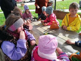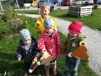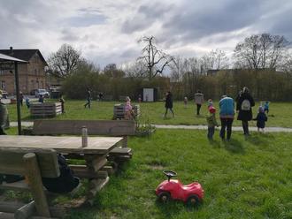 Unsere Ostereiersuche hatten wir aufgrund des Wetters auf „nach Ostern“ verschoben. Der OT fand am Dienstag wie gewohnt statt, doch erst ab 16:30 Uhr, wenn auch die älteren Kinder ihre Hausaufgaben daheim erledigt hatten, sollte der Osterhase seine Eier versteckt haben. Endlich war es so weit, etwa 20 kleine und große Kinder stürmten mit ihren teilweise selbst gebastelten Körbchen in den Garten und suchten, was der Osterhase kurz zuvor für sie versteckt hatte: jede Menge Schokoladen-Eier und -Figuren. Die Spannung und Freude war riesengroß und wir hatten auch sehr viel Glück mit dem Wetter. Da! Wieder blitzte bei strahlendem Sonnenschein das bunte Stanniol-Papier zwischen den Grashalmen hervor, war es ein Marienkäfer oder ein Küken aus Schokolade?