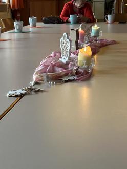 Am vergangenen Freitag haben wir unsere Annemarie verabschiedet. In einer schönen Andacht haben wir alle an sie gedacht und uns an unsere gemeinsame Zeit mit ihr erinnert. Lieder und Gebete und eine Geschichte „die das Leben“ schreibt rundeten die schöne Feier für Annemarie ab. Erika und Helga haben für Annemarie gebetet. Danke Euch dafür.