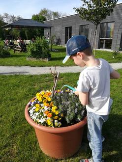 „Können wir den Rasensprenger und die Wasserrutsche anstellen?“ fragten einige Kinder – und ja, die Temperaturen hätten es an dem Tag annähernd ermöglicht, doch der lange Schlauch war noch nicht wieder angebracht. Inzwischen hat der Bauhof alles neu installiert und den Anschluss sogar nach oben verlegt, was die zukünftige Handhabung erheblich erleichtern wird. (Herzlichen Dank liebe Herren vom Bauhof!) Wir freuen uns sehr auf die nächsten warmen Tage, zu denen wir für die Erwachsenen auch bald wieder Eiskaffee mit frisch geschlagener Sahne servieren werden.