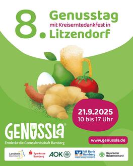 Parallel zum Genusstag wird in diesem Jahr auch das Kreiserntedankfest des Bayerischen Bauernverbands in Litzendorf gefeiert. Gemeinsam mit der Gemeinde Litzendorf, örtlichen Vereinen und regionalen Erzeugern lädt der Landkreis Bamberg dazu ein, diesen besonderen Tag für die ganze Familie mitzuerleben.