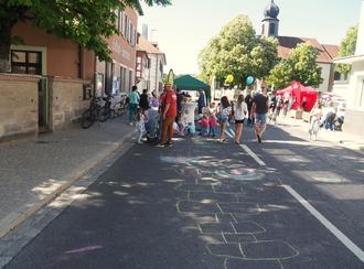Bianca Müller von der Tourist Information der Fränkischen Toskana und Rhona Wagner vom Planungsbüro Plan und Praxis gaben Informationen über die aktuelle Situation in Bezug auf die neue Ortsmitte und die Weiterentwicklung der Brauerei Dauer und freuten sich über viele interessante Gespräche, insbesondere darüber wie man den Aufenthaltscharakter in Strullendorf verbessern kann. Auch Kinder und Jugendliche machten das am Stand von ISO e.V. An der Baustelle am Integrativen Generationenzentrum gab es umfangreiche Erläuterungen vom begleitenden Architekturbüro Schlosser & Keller. Lumbi Werner und seine Mannschaft waren am Rathaus für die kleinen Besucher im Einsatz. Schön sind auch die kleinen musikalischen Darbietungen gewesen und die ausgelassene Stimmung für die die Trommelgruppe aus dem Mehrgenerationenhaus und DJane Ani gesorgt haben. Ein Highlight war an diesem Tag sicher, dass die Ortsdurchfahrt für einige Stunden gesperrt war und man die vielbefahrene Straße zum Flanieren und die Kinder zum Verschönern mit Straßenkreide nutzen konnten.