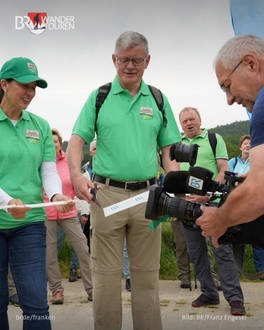Tassilo Forchheimer, Leiter BR Franken (im Foto zweiter von rechts) war die ganze Strecke mitgelaufen und gab am Schluss für den FT sein Statement ab: "Die Landschaft ist großartig, wirklich schön, eine Traumlandschaft!"