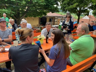 „Mittags in Franken“ LIVE auf Radio Bayern 1 mit Moderator Stefan Straßer während der Mittagspause bei der Brauerei Hönig Tiefenellern.