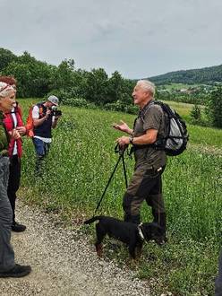 Ranger Florian Essel (links) vom Naturpark Fränkische Schweiz-Frankenjura begleitete uns bei Lohndorf und erläuterte die Natur im Ellertal und die Arbeit der Ranger.
