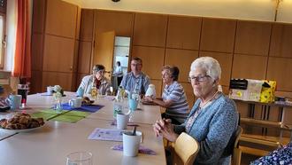 Die Texte und die Melodie - alles auf Abruf bereit. Und so verbrachten wir einen schwungvollen und stimmfreudigen Nachmittag im Pfarrsaal.