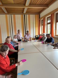 Und vorher kam der Spaß mit einer neuen Beschäftigung auf seine Kosten. Tischtennis mit 16 Teilnehmern und Flummi Ball werfen in eine Schüssel. Da war Lachen und Freude vorprogrammiert.
