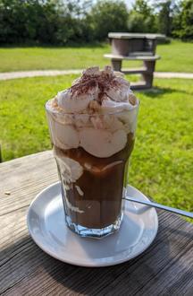 An solchen Tagen wird mit Eiskaffee angestoßen. Alle genießen eine entspannte Zeit des Austausches im Freien und die Kinder fahren mit den Bobbycars. Sobald der Sommer sich zeigt, werden wir wieder die Wasserrutsche aufbauen. Überraschend erfreulich war unsere bisherige Erdbeer-Ernte, wie die kleine Leah auf dem Foto zeigt, ein kleiner Trost für die bisherigen, frischen und sonnenarmen Frühlingstage.