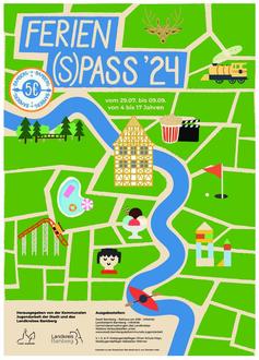 Das Design für das Ferienpassplakat wurde wieder im Rahmen eines Wettbewerbs in Zusammenarbeit mit den Mediengestalter-Klassen der Berufsschule II gestaltet. Aus einer Reihe von unterschiedlichen Entwürfen ging Sharleen Masi als Siegerin hervor. Sie hat eine abwechslungsreiche Landkarte gestaltet, die das Alte Rathaus in Bamberg und die vielen Angebote des Ferienpasses zeigt.