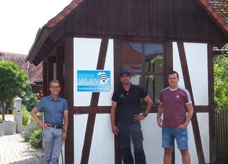 Bürgermeister Wolfgang Desel, Gemeinderat Günter Grimm und Dominik Wagner, der zuständige Mitarbeiter für die IT im Strullendorfer Rathaus, freuen sich, dass für Einheimische und Gäste vor Ort jetzt das kostenlose WLAN zur Verfügung steht.